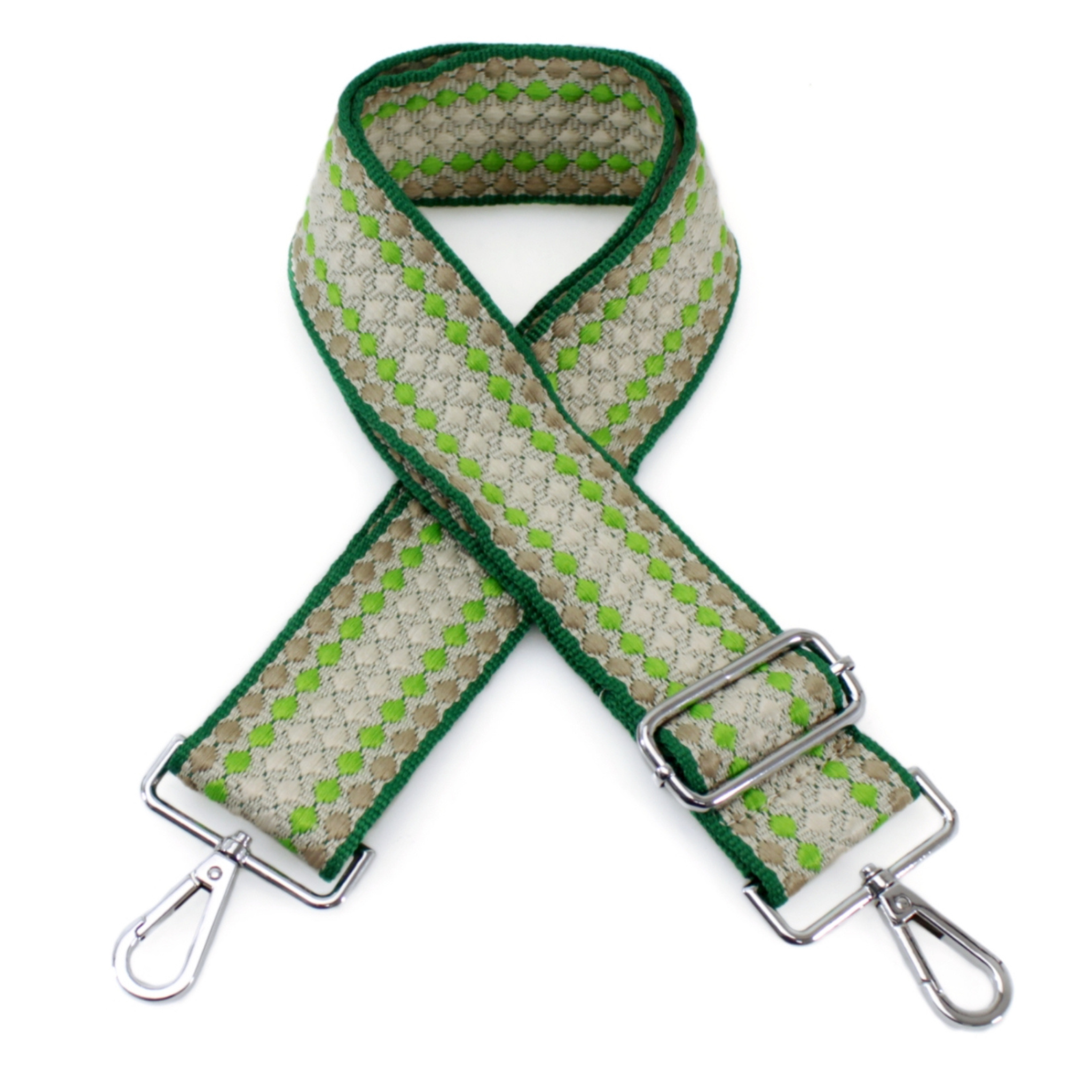 Refresh your favourite handbag with this eye-catching green and lime dots adjustable bag strap, crafted from durable woven canvas for everyday comfort and reliable wear. The vibrant dotted design adds a bold pop of colour while remaining versatile enough to complement a wide range of handbags, totes, and crossbody styles.