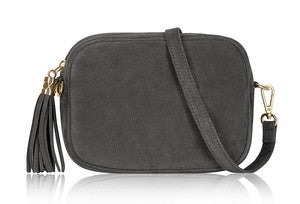 Cara Suede Leather Crossbody Bag - Dark Grey