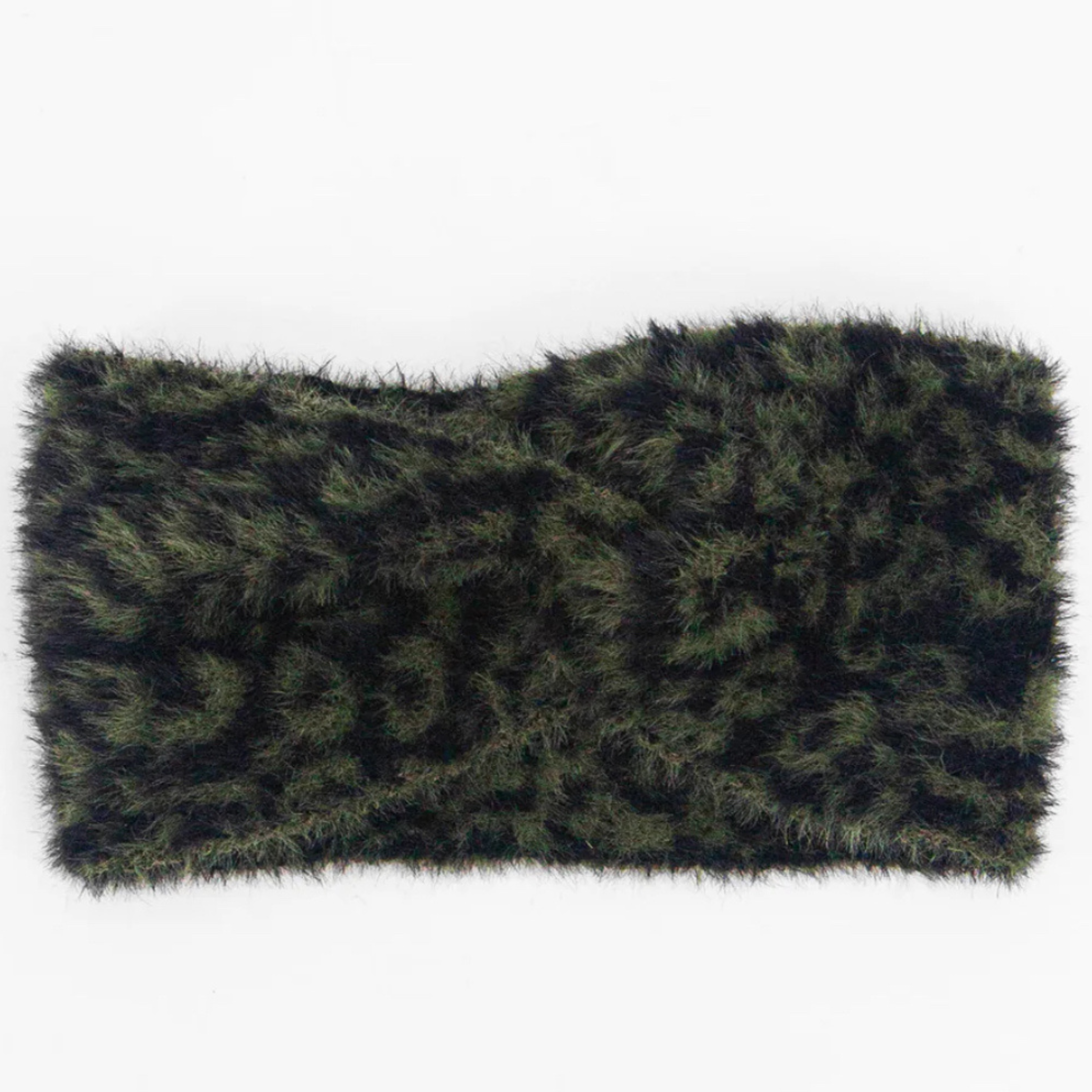 This leopard print headband is crafted from a soft, fluffy nylon yarn. Showcasing a classic animal pattern and knot front design