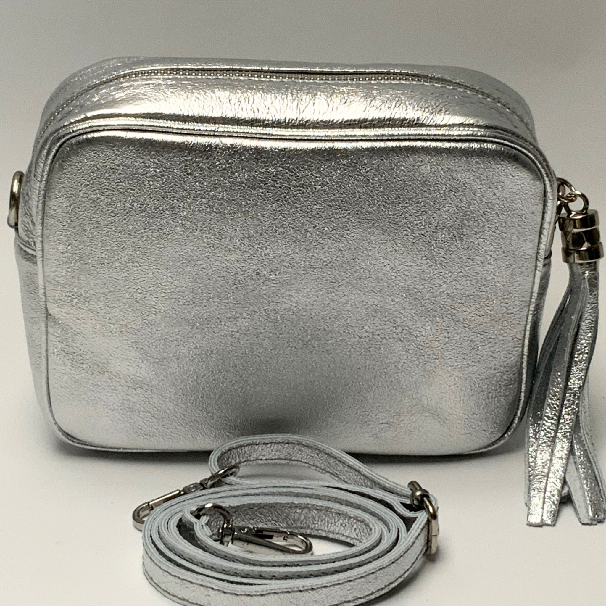 GEMMA crossbody genuine leather bag - Light Silver