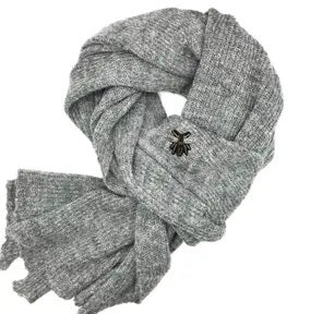 Wrap yourself in effortless luxury with this grey loose knit scarf featuring a detachable jewelled bee pin, designed to bring warmth, texture, and elegant detail to your everyday wardrobe. Soft to the touch and beautifully draped, this long designer scarf blends comfort with statement styling.