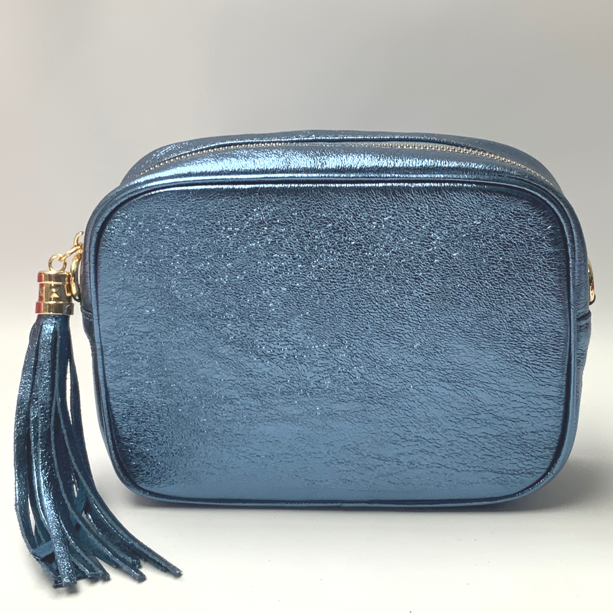 Gorgeous genuine leather denim blue metallic crossbody/shoulder bag