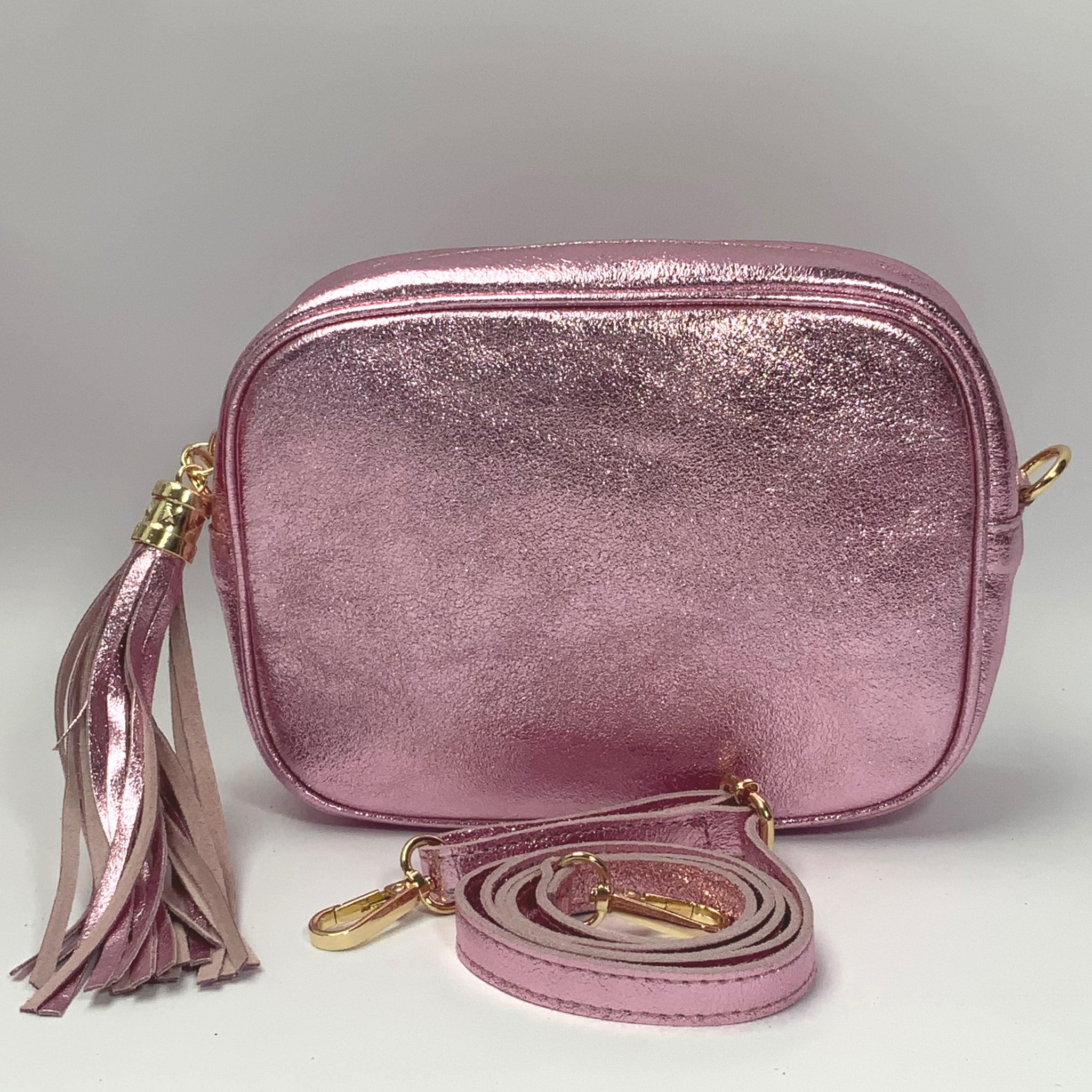 Gorgeous genuine leather pink metallic crossbody/shoulder bag