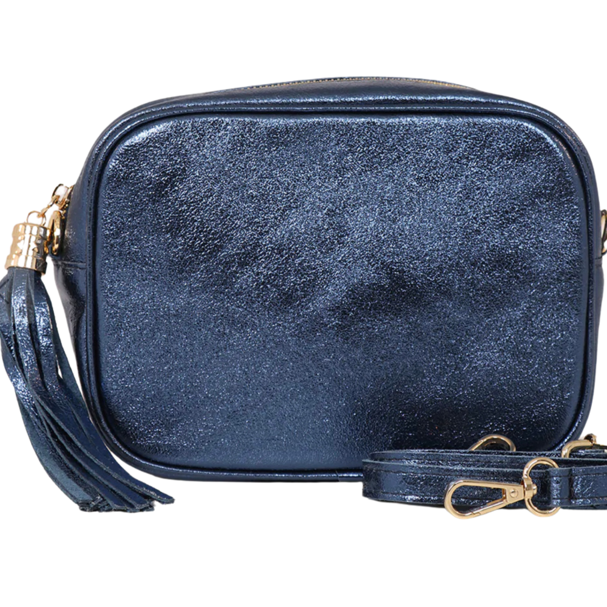 Gorgeous genuine leather midnight blue metallic shoulder/ crossbody bag