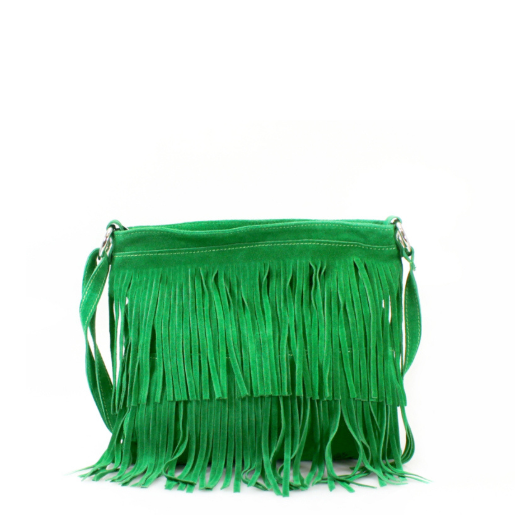 Pippa Suede Leather Tassle Crossbody Bag - Emerald Green