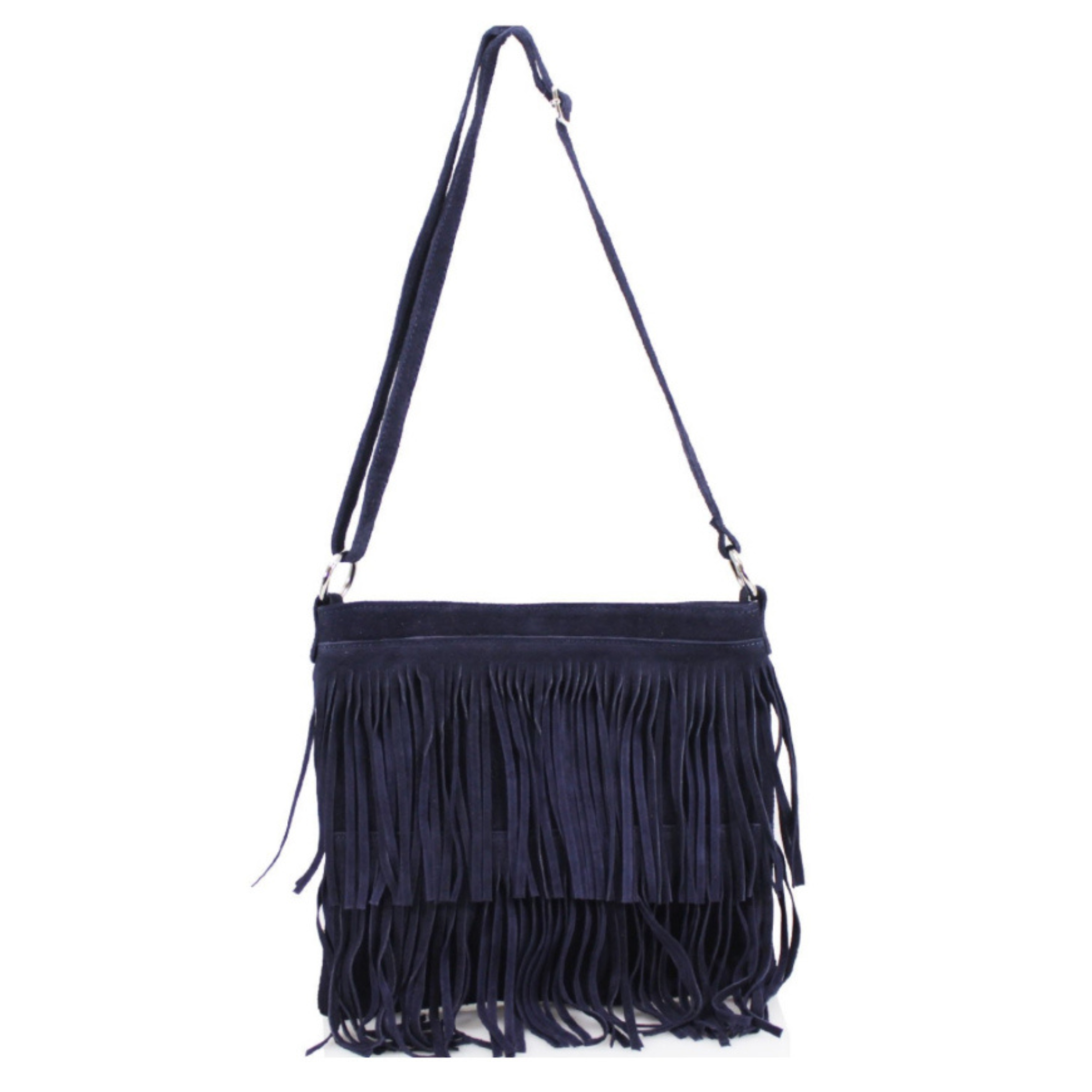 Pippa Suede Leather Tassle Crossbody Bag - Navy