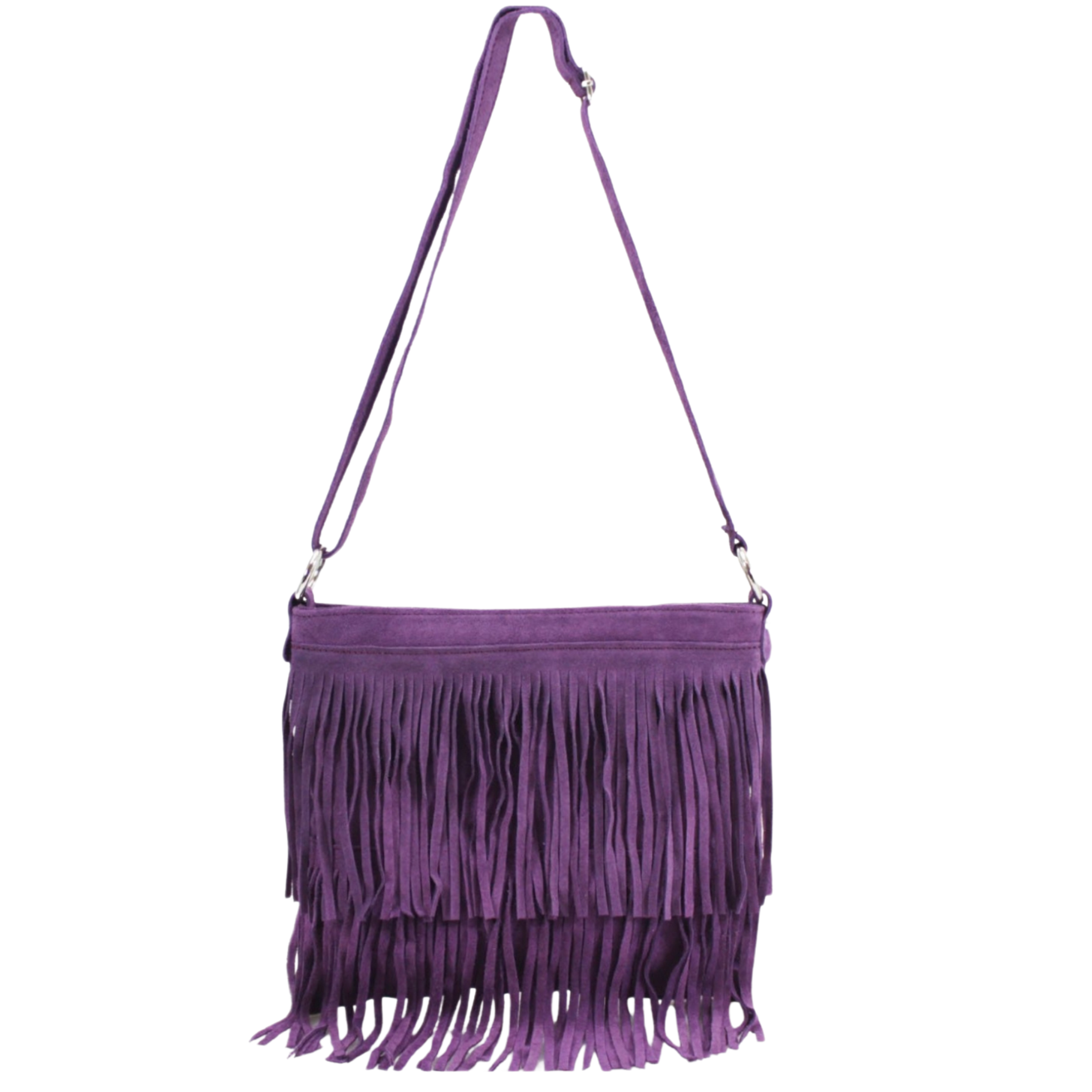 Pippa Suede Leather Tassle Crossbody Bag - Purple
