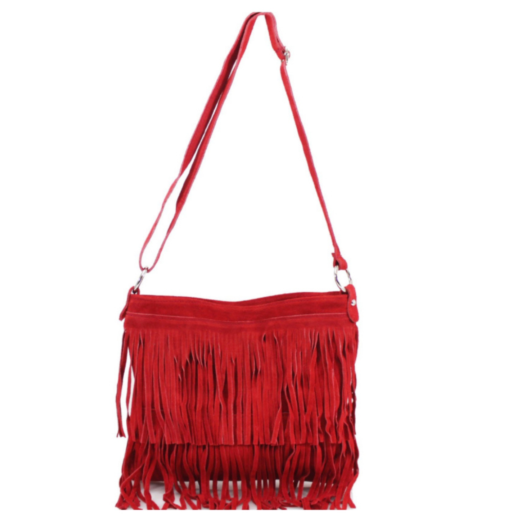 Pippa Suede Leather Tassle Crossbody Bag - Red