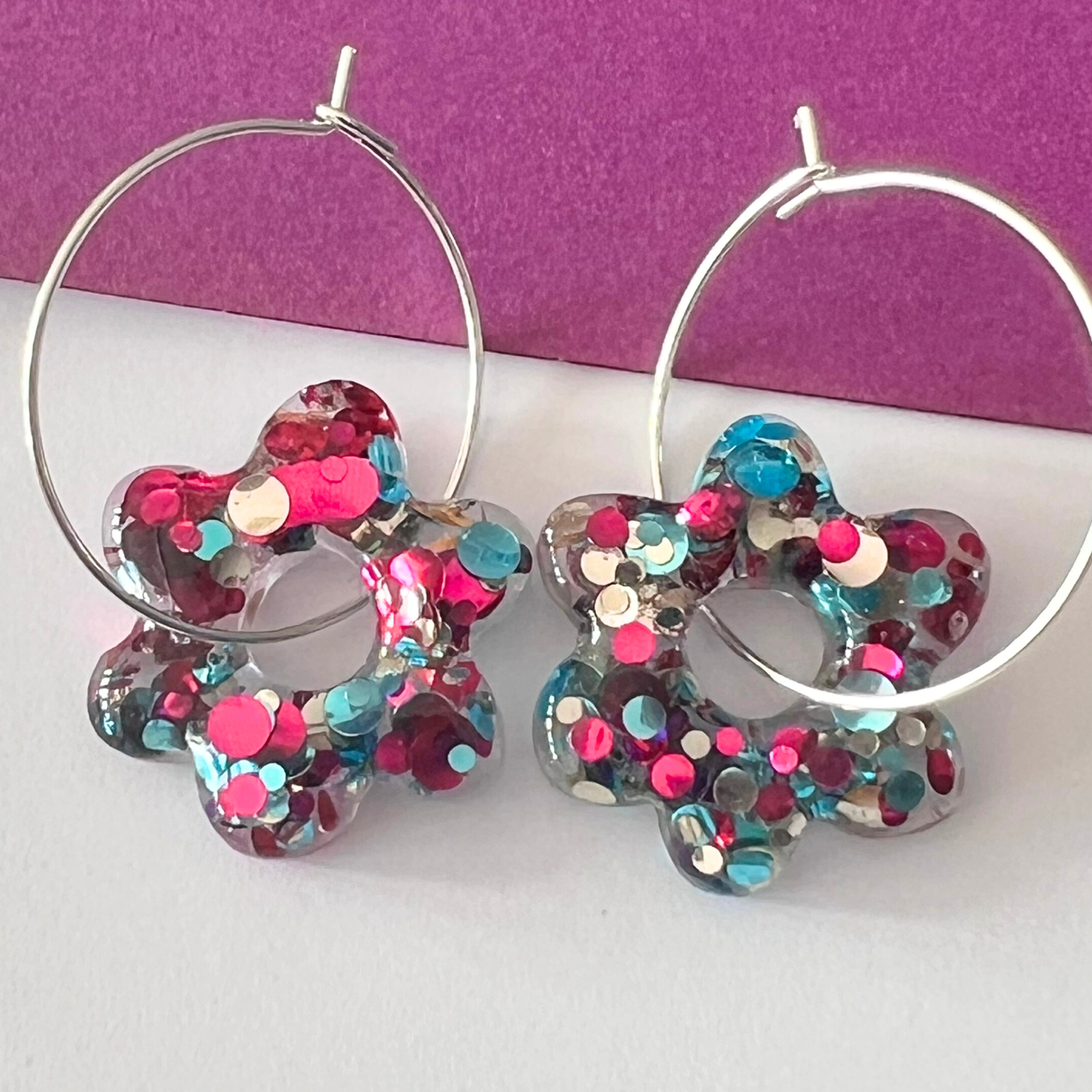 Handmade Sparkling Confetti Flower Earrings