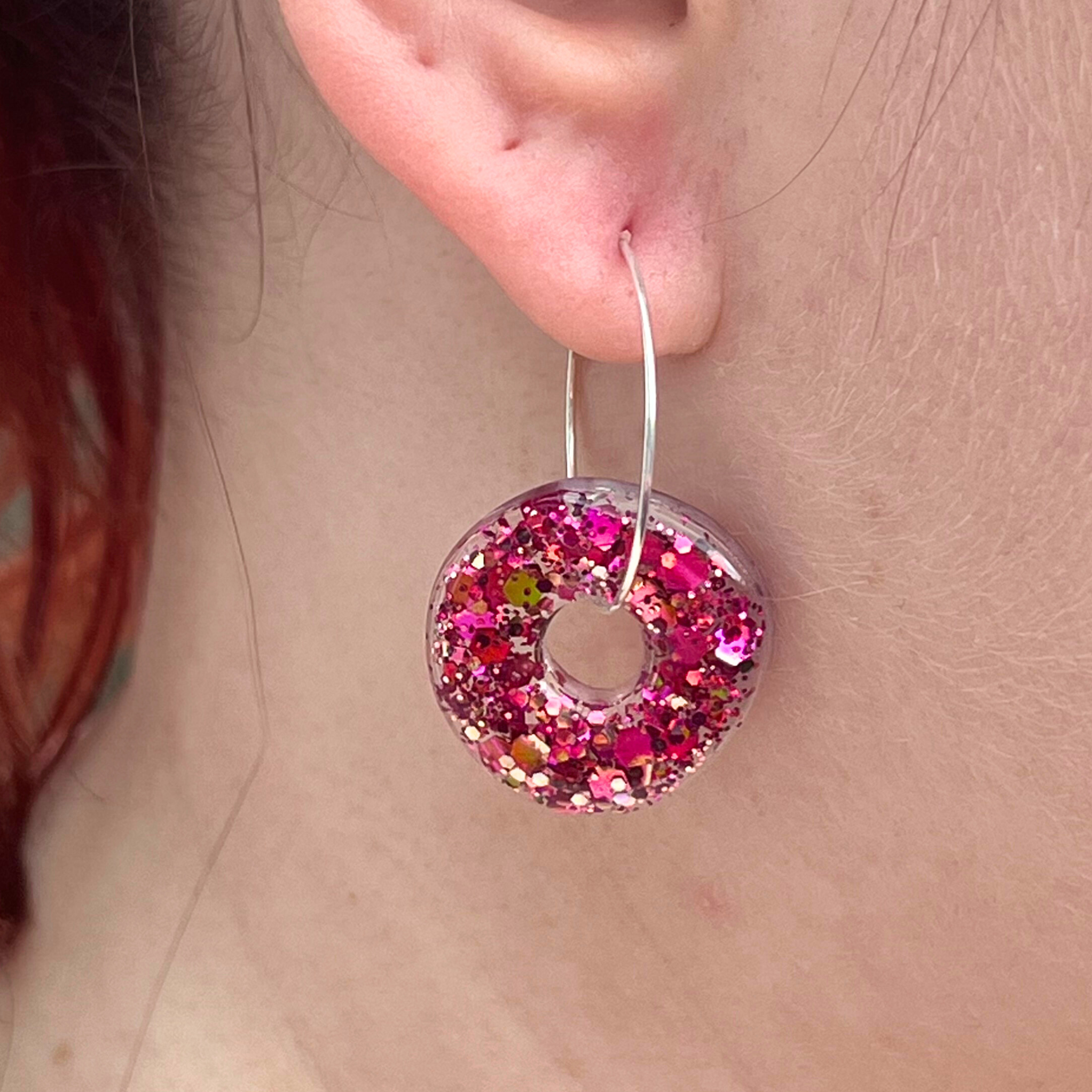 Handmade Sparkling Confetti Pink Glitter Round Donut Earrings