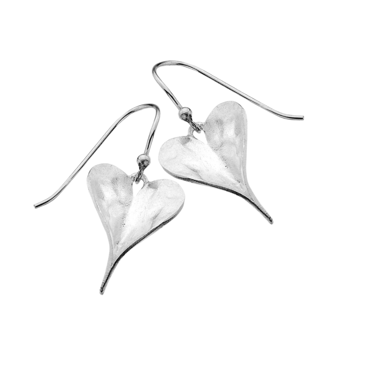 Sterling Silver Leaf Heart Pendant Necklace and Earrings